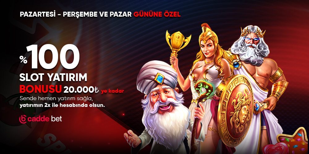- Pazartesi - Perşembe ve Pazar Gününe Özel %100 Slot Yatırım Bonusu